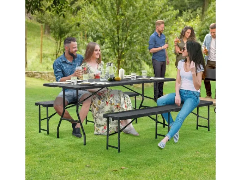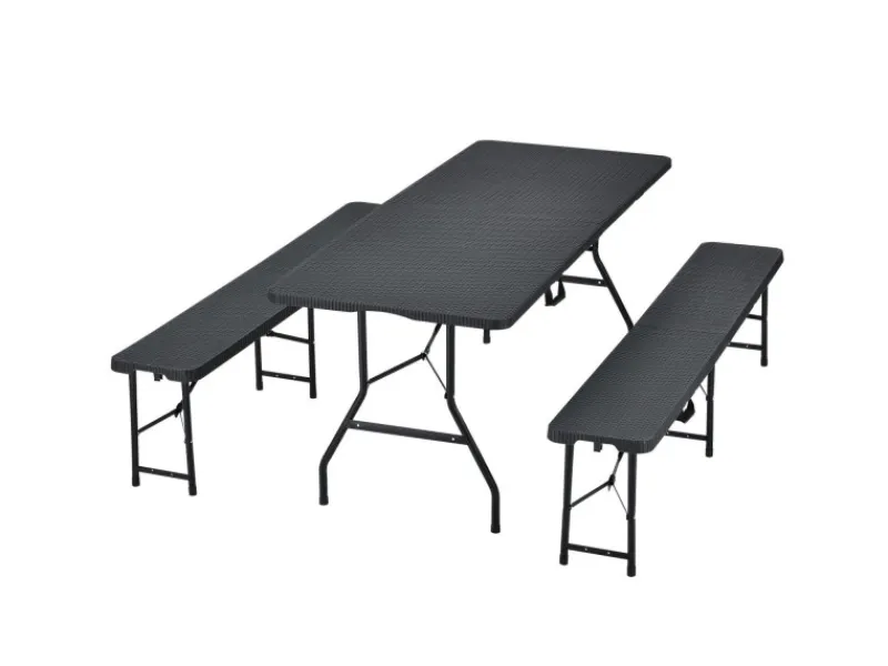 3-teilig: Klappbare Garnitur in Rattan-Optik – Tisch & Bänke für Garten, Party, Camping oder Balkon