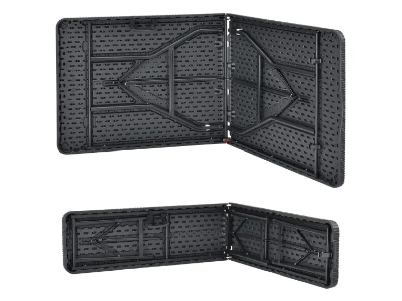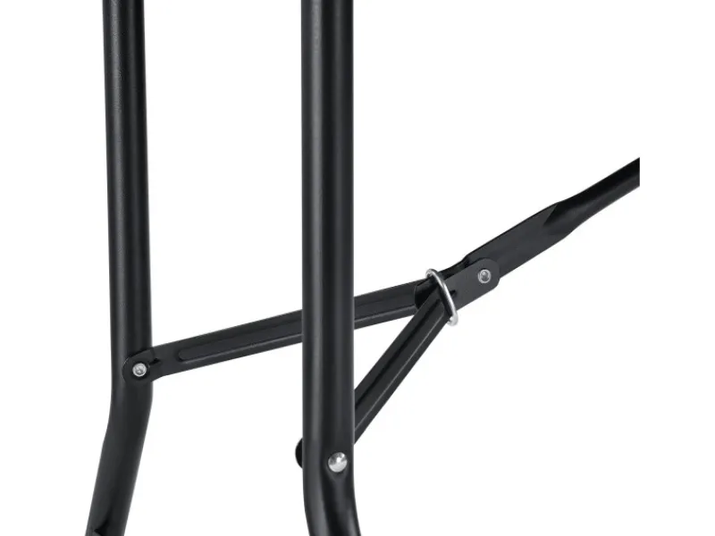 Die Gestelle sind aus pulverbeschichtetem Metall gefertigt und bieten eine hohe Standfestigkeit. Sicherungsriegel und -ringe am Gestänge verhindern ein versehentliches Zusammenklappen von Tisch und Bänken.
