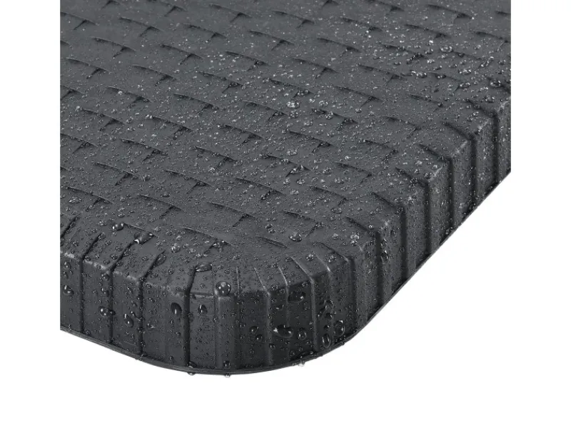 Die Polyrattan-Oberflächen bestehen aus wetterfestem und UV-beständigem Kunststoff. Das langlebige Material lässt sich nach der Feier leicht mit einem feuchten Tuch reinigen. Ein weiterer Vorteil: Im Gegensatz zu Holz splittert es nicht.