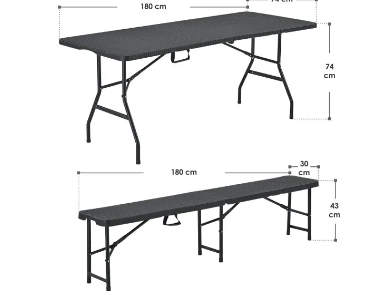 Ausgestattet mit zwei 180 cm langen Bänken bietet das Bierzeltgarnitur Set reichlich Platz für Ihre Gäste. Sie können bequem nebeneinandersitzen und dank der Sitzhöhe von 43 cm leicht wieder aufstehen. Auf dem 180 × 74 cm großen Tisch haben Sie reichlich Stellfläche für Speisen und Getränke.