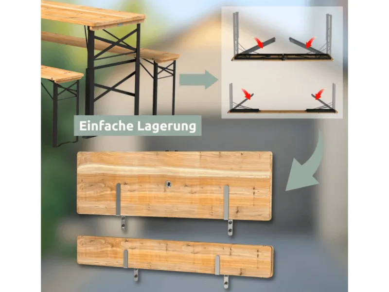 Bierzeltgarnitur Mehrteilig & Klappbar Inklusive Wandhalterung Höhenverstellbar*holz4home New