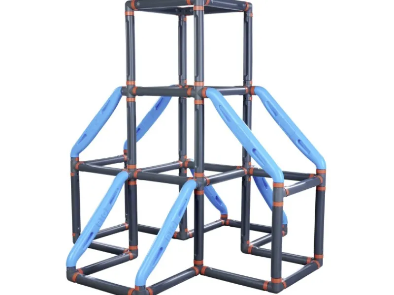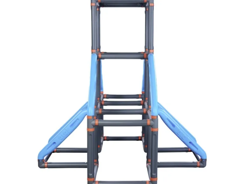 Der BIG Kraxxl The Tower Kletterturm gewährleistet mit Hilfe seiner sehr stabilen und flexibel einsetzbaren geraden Stangen sowie den, auf dem Markt, einzigartigen Diagonaltraversen eine extreme Stabilität. Die im Blasverfahren produzierten Stangen ermöglichen eine Belastung des Kletterturms von bis zu 100 kg.