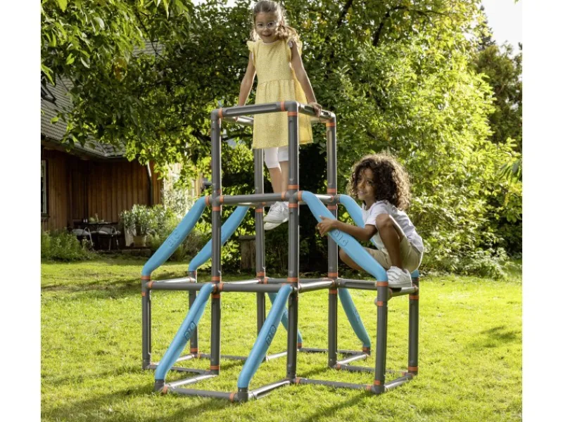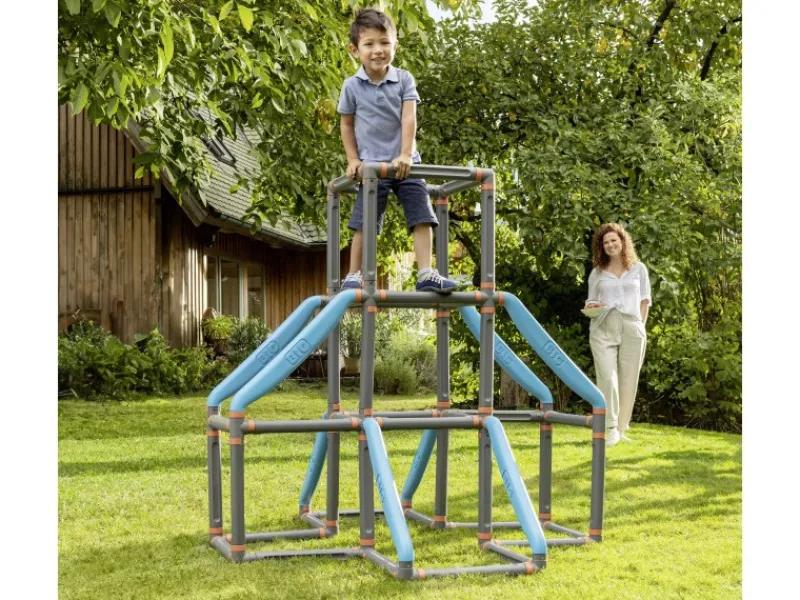 Mit der BIG Kletterpyramide aus variablen Würfeln u. Stangen auf 3 Etagen entsteht für Kinder von 3-7 Jahren ein aufregender Spielplatz im eigenen Garten