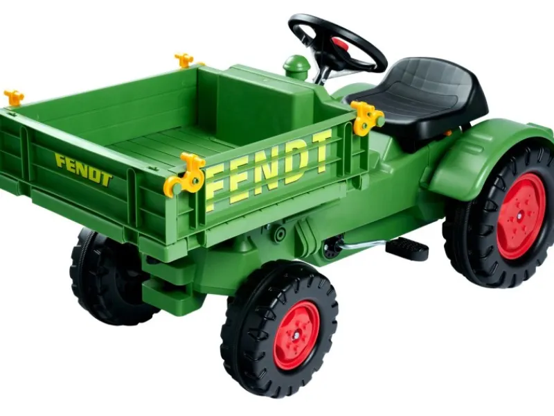 Durch den integrierten Präzisionskettenantrieb lässt sich der Traktor schon mit wenig Kraft antreiben und dadurch bereits von kleineren Kindern leicht fahren. Kindgerechte Pedale sorgen für sicheren Fahrspaß. Die Zahnritzellenkung ermöglicht ein einfaches und stufenloses Lenken des Traktors. Zudem lässt sich die Kette durch den integrierten Exzenter bei Bedarf problemlos nachspannen. Damit die Kinder lange Spaß an dem Traktor haben, kann der Sitz in drei Stufen auf die jeweilige Beinlänge des Fahrers angepasst werden. Je eine Anhängerkupplung vorne und hinten sorgen für zusätzliches Spielvergnügen.