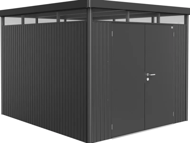 Metall-Geräteschuppen mit modernen Oberlichtern und Doppeltür