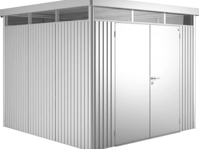 Metall-Geräteschuppen mit modernen Oberlichtern und Doppeltür