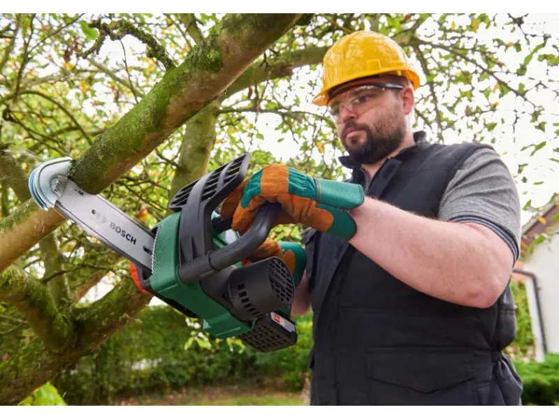 Kraftvolle Akku-Kettensäge für verschiedene Sägearbeiten rund ums Haus