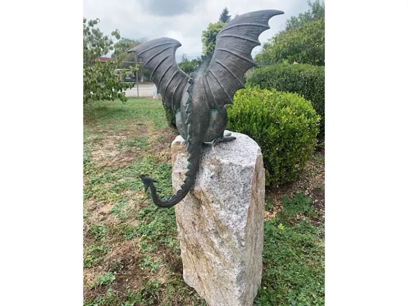 Die Rottenecker Bronze-Skulptur Drachenvogel ist eine wunderschöne und sehr detaillierte Drachenskulptur mit großen offenen Flügeln und perfekt für Ihren Gartenteich geeignet. Der Körper ist fein modelliert und die Öffnungen für das Wasserspiel befinden sich an dem besonders ausdrucksstarkem Kopf. Der Wasseranschluss misst 12,5 mm (1/2“). Die Rottenecker Bronze-Skulptur wurde im aufwendigen Wachsausschmelzverfahren mit hochwertigen Rohstoffen hergestellt.