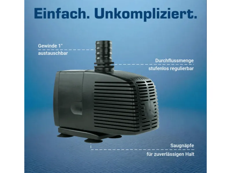 Diese Wasserpumpe bietet eine Förderhöhe von bis zu 2,8 Metern und ist stufenlos einstellbar.