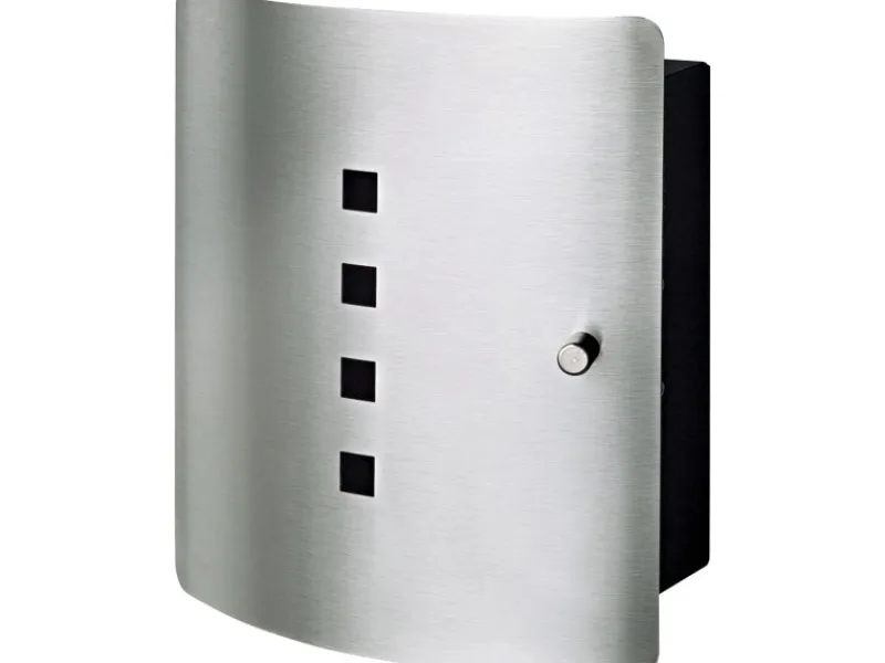 Die Burg-Wächter Schlüsselbox Quad 6204/10 Ni hat eine Tür aus rostfreiem Edelstahl. Das Stahlblechgehäuse ist schwarz. Die Box wird mithilfe des praktischen Magnetverschlusses verschlossen. 10 Haken sorgen für Ordnung.