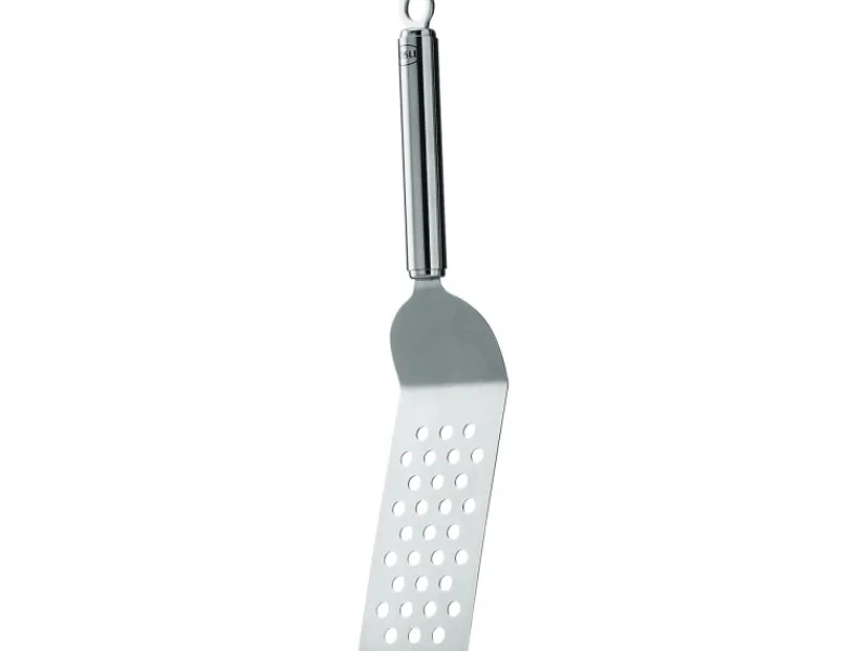 Der Rösle Burger-Wender ermöglicht das leichte Wenden von z. B. Burgern. Er ist ebenfalls ideal zum Herausheben von Speisen aus der Grillpfanne oder der Grillplatte geeignet. Fett und Flüssigkeiten können durch die Lochung abfließen.