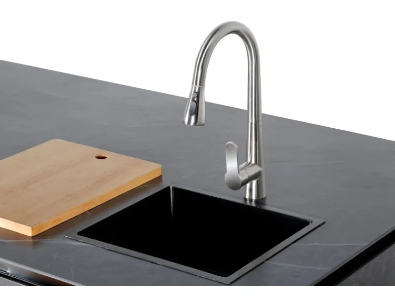 Inkl. Edelstahl-Spüle mit Ablauf und hochwertigem Wasserhahn