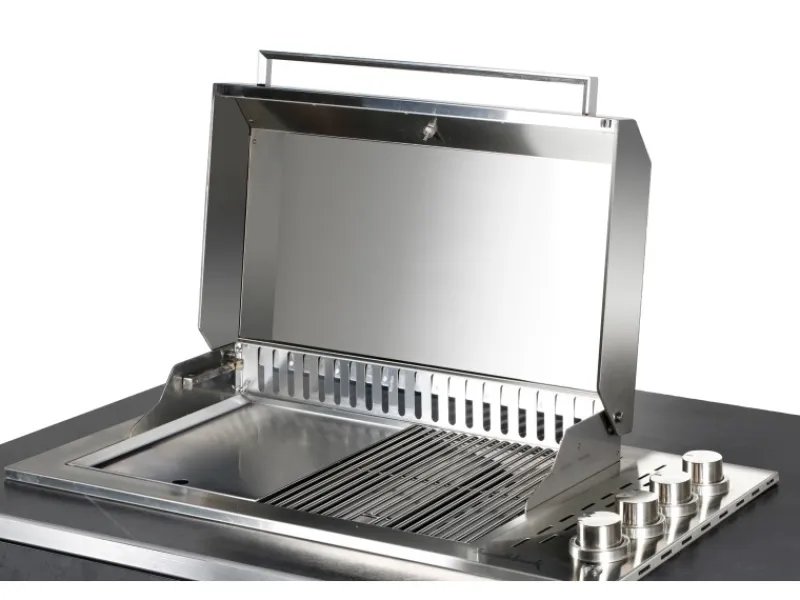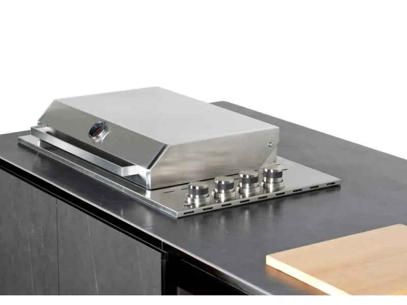 Moderne und flache Grillhaube aus Edelstahl, für ein ansprechendes Design der Outdoor Küche