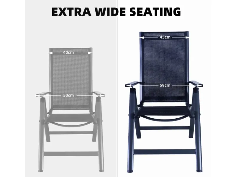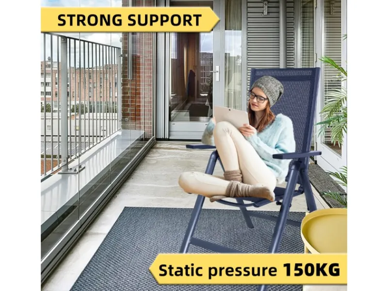 Die Rückenlehnen und Sitzflächen der Stühle sind aus hochwertigem Teslin-Gewebe gefertigt, das für Komfort, Atmungsaktivität, schnelles Trocknen und einfache Reinigung sorgt und sich somit perfekt für Außenbereiche wie Terrassen, Pools, Balkone usw. eignet. Außerdem lässt sich die Rückenlehne des Stuhls in bis zu 7 Positionen verstellen, so dass Sie sich bequem entspannen können.