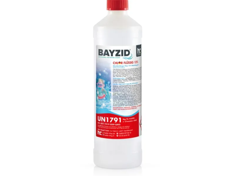 Die gebrauchsfertige BAYZID® Flüssigchlor-Lösung von Höfer Chemie ist ein schnell wirkendes Desinfektionsmittel mit Klareffekt und einem 13 – 15 % Aktivchlorgehalt. So können Sie Ihr Schwimmbad zuverlässig von Bakterien befreien und den Chlorgehalt im Pool schnell oder auch langfristig anheben.