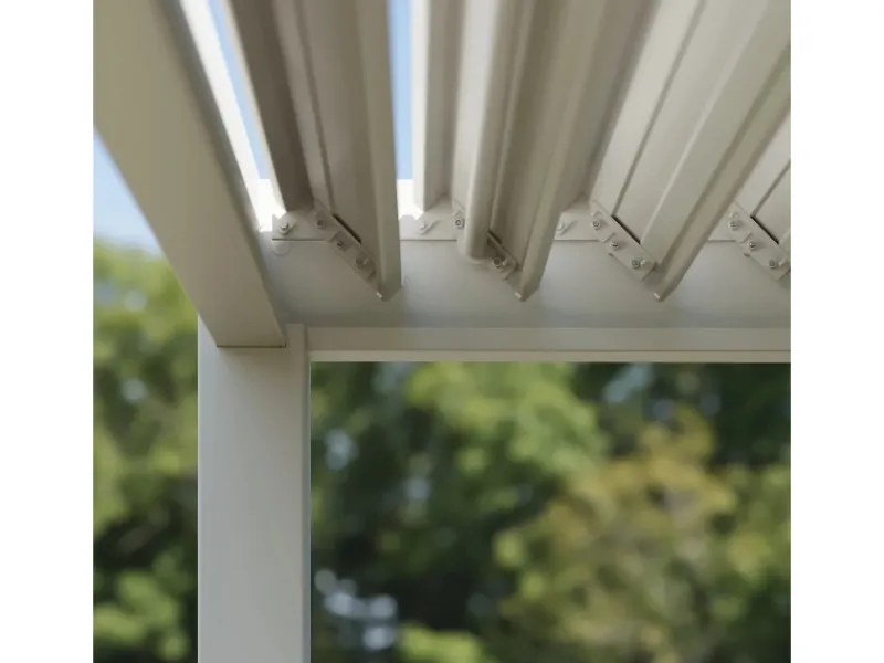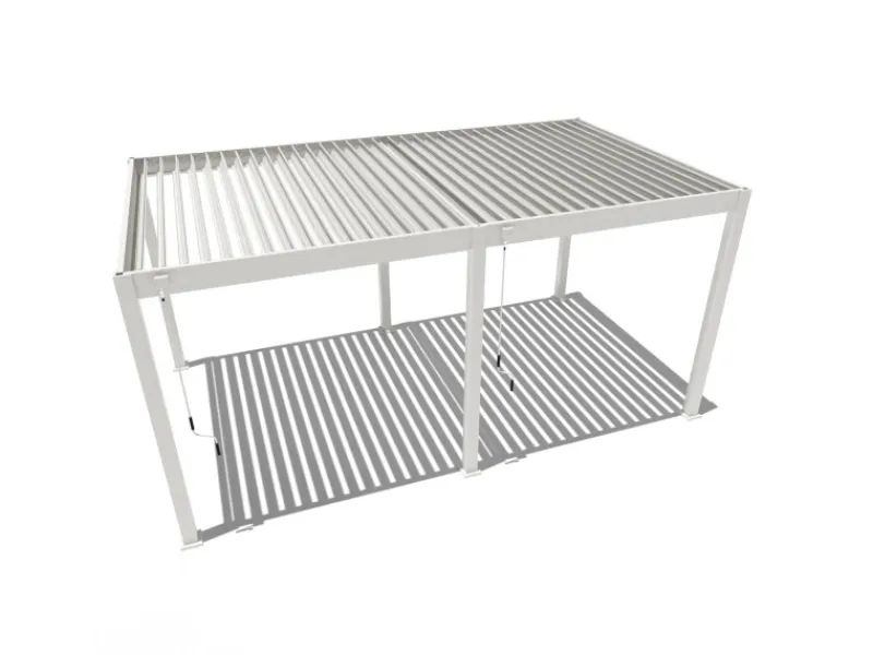 Pergola weiß – Aluminium-Trägerkonstruktion & verzinkte Stahl-Lamellen