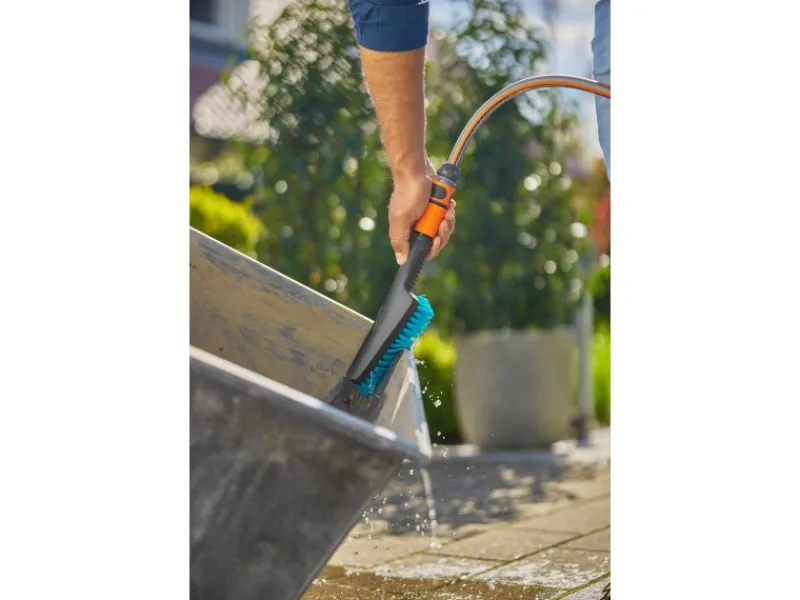 Gardena Cleansystem Handbürste S hard für Nassreinigung kleinerer Flächen wie Mülleimer mit Gartenschlauchanschluss