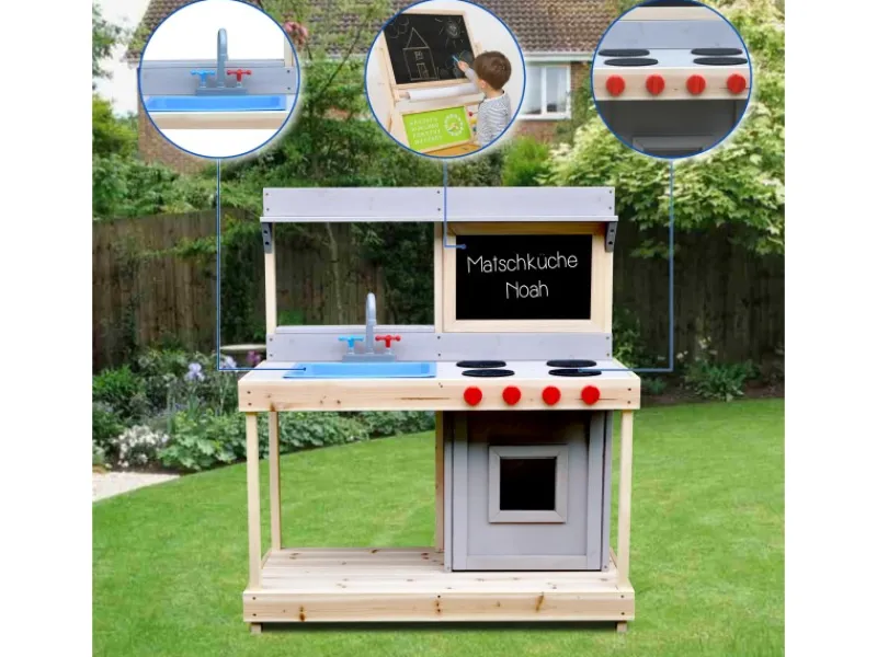 Die Outdoor-Küche ist für Mädchen und Jungen ab 3 Jahren geeignet