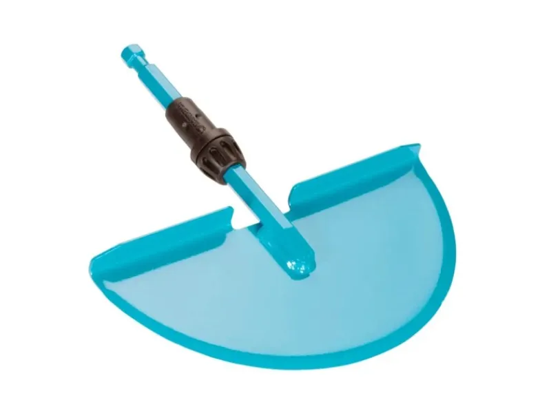 Ein halbmondförmiges, angeschärftes und gehärtetes Stahlblatt erlaubt ein einfaches stechendes oder schiebendes Arbeiten.