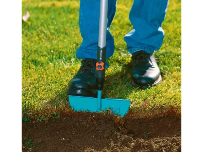 Der Rasenkantenstecher passt zu allen Gardena combisystem-Stielen, wobei Gardena eine Stiellänge von 130 cm empfiehlt, abhängig von der Körpergröße.