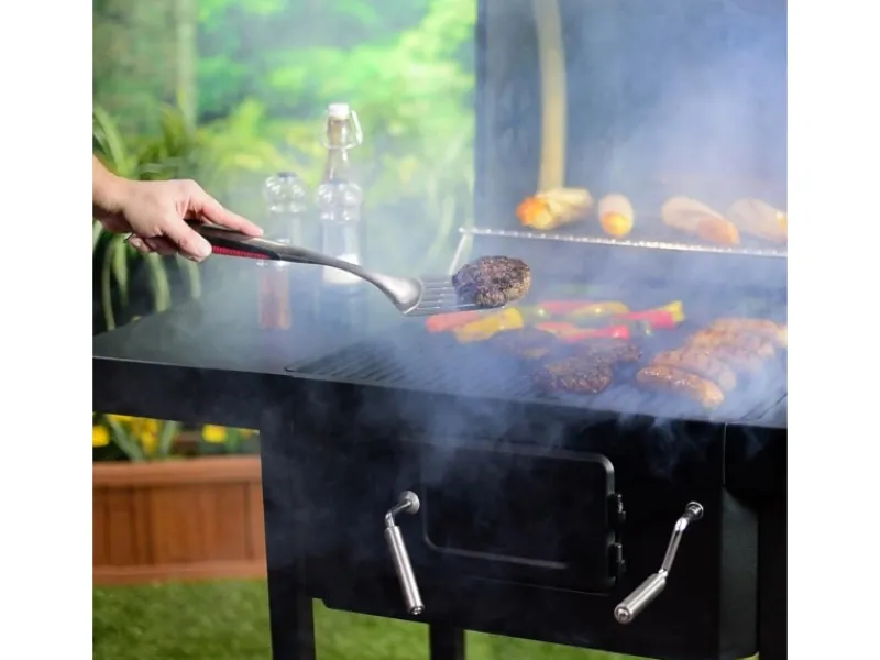 Der Char-Broil Grill-Wender ist das ideale Zubehör für alle Grill-Fans. Der extralange Griff ist mit einer Comfort Grip-Beschichtung ausgestattet und liegt perfekt in der Hand. Zudem ist er rutschfest. Die Form des Wenders eignet sich optimal zum Transport von Grillgut auf den Teller. Überflüssiges Fett sowie Fleisch- oder Gemüsesäfte tropfen durch die Schlitze im Kopf sicher ab und setzen so nicht den Teller unter Wasser.