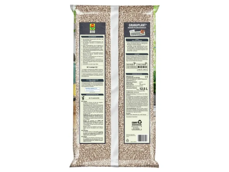 Einpflanzen: Den Topf zu einem Viertel mit dem Compo Pflanzgranulat befüllen. Die Pflanze in den Topf setzen und zur Stabilisierung weiteres Granulat um die Pflanze herum einfüllen.