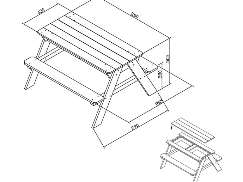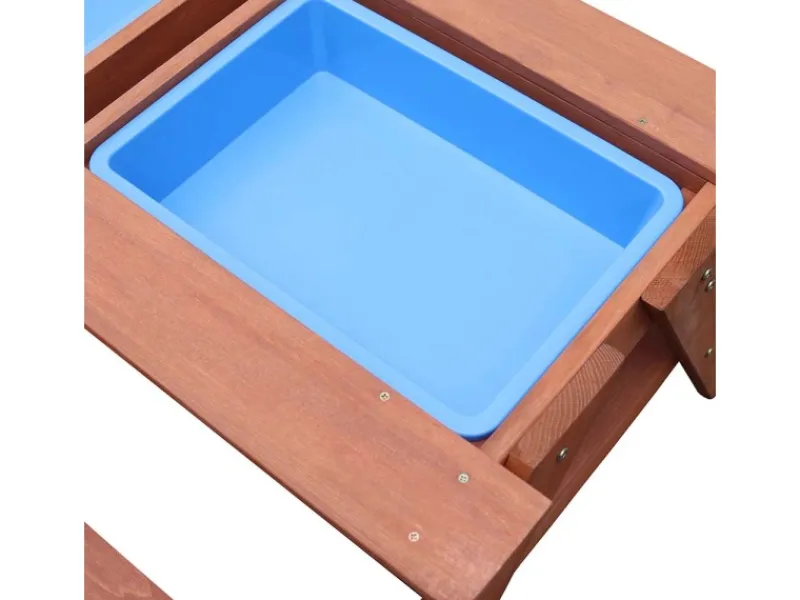 Der Sand- und Wassertisch hat eine abnehmbare Tischplatte mit zwei Plastikbehältern darunter, beide mit einem Fassungsvermögen von ungefähr 4 Litern. Diese blauen Behälter können mit Sand und/oder Wasser gefüllt werden, natürlich ist auch genug Platz, um Spielsachen zu verstauen. Außerdem sind die Kästen herausnehmbar, damit die Reinigung erleichtert wird. Die klassische Kombination aus Sand und Wasser ist bei Kindern immer ein Erfolg. Im Handumdrehen verwandeln Sie den Sand- und Wassertisch in einen Picknicktisch, an dem die Kinder basteln, malen oder Leckereien genießen können.