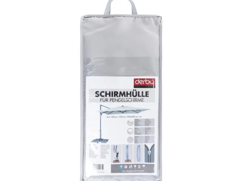 Die Derby Schirmhülle für Pendelschirme Ravenna bieten Rundum-Schutz bei jedem Wetter. Ihr Sonnenschirm ist sicher geschützt vor Witterungseinflüssen und dem Ausbleichen durch die Sonne. Top Optik, gute Passform, zeitlos moderne Schutzhülle. Passend für Pendelschirme mit einem Durchmesser von 350 cm bzw. 300×300 cm, mit Reißverschluss und Bedienstab