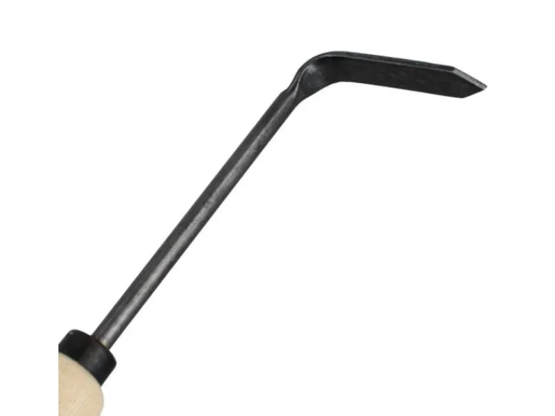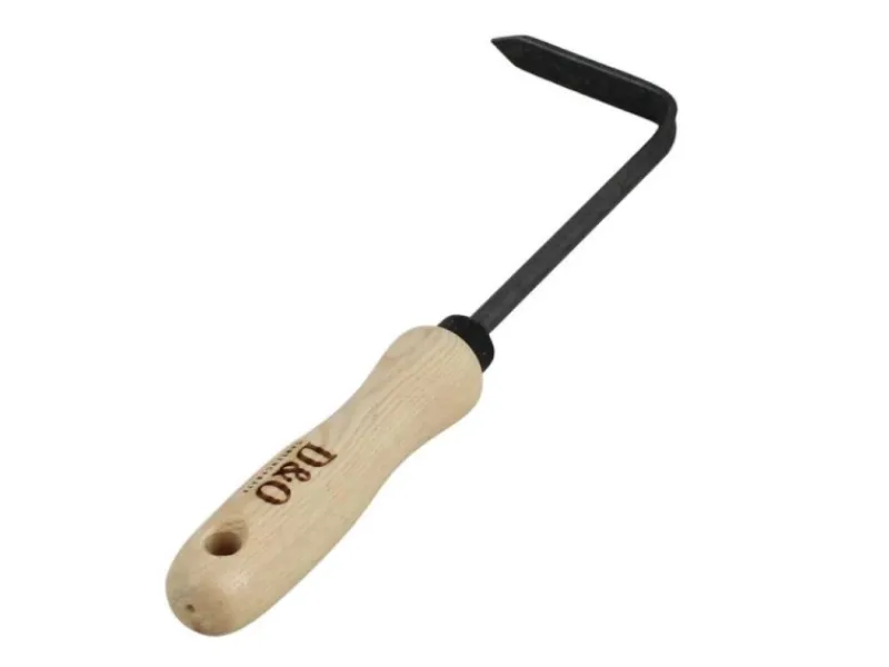 Der abgerundete Holzgriff aus Esche liegt gut in der Hand und kann durch das Aufhängeloch einfach verstaut werden.
