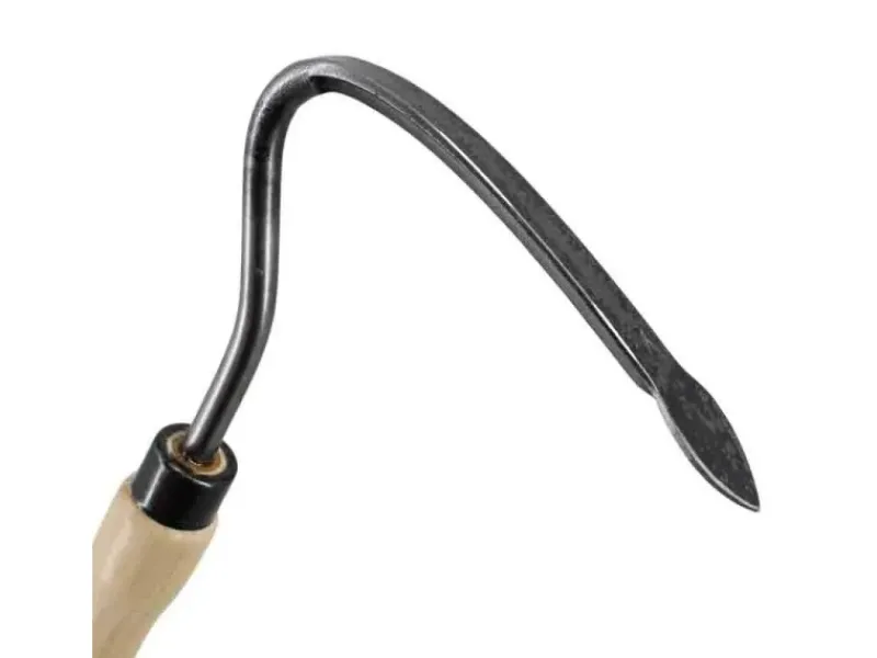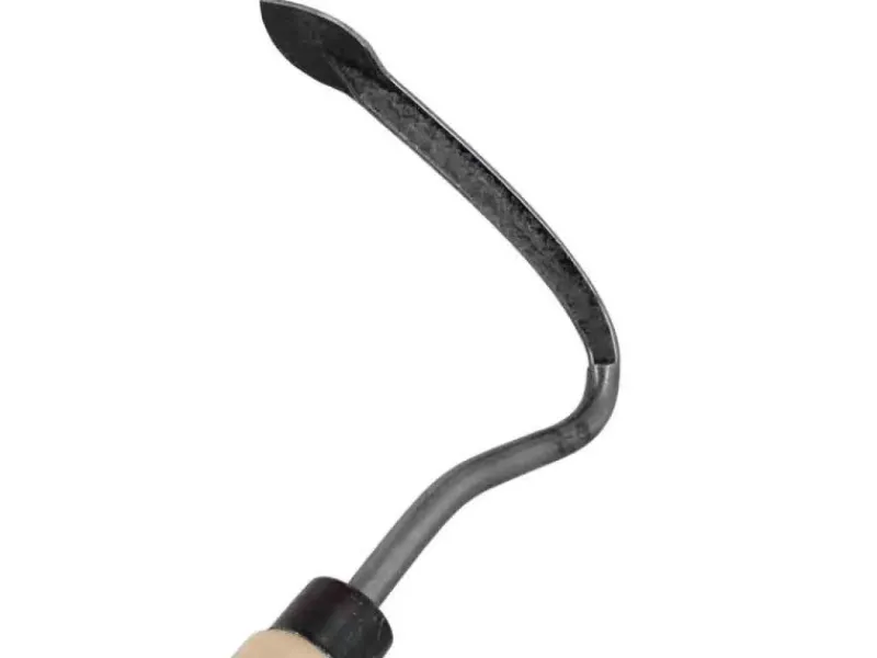Der 48 cm lange Knopfstiel aus Esche ermöglicht es, rückendschonend zu arbeiten.