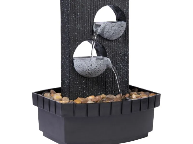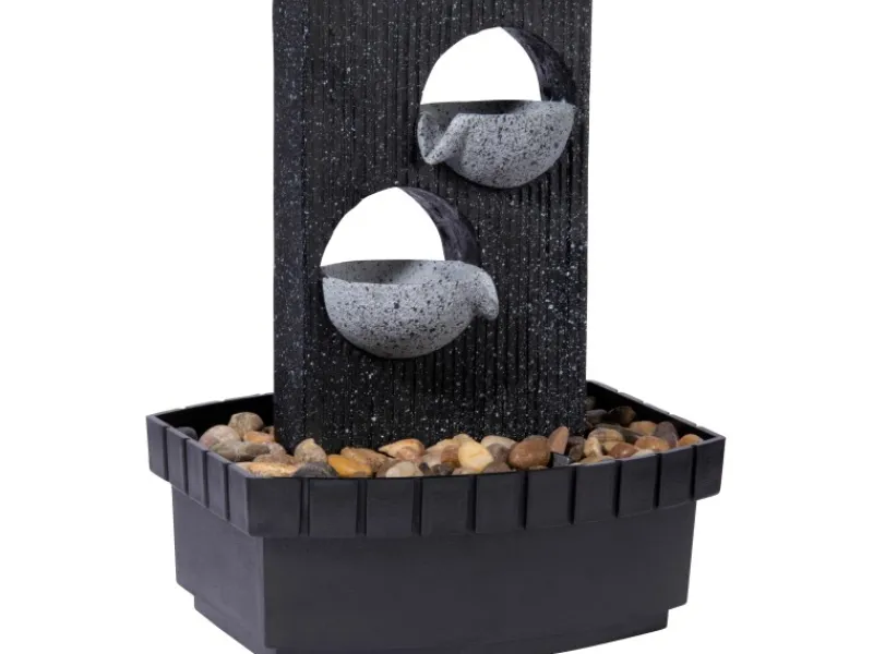 Der Springbrunnen ist ca. 20,5 cm x 16,5 cm x 26 cm groß und hat einen Energieverbrauch von 3,5 W. Neben dem Brunnen sind 200 g Ziersteine, ein ca. 1,6 m langes Netzkabel inkl. Pumpe und eine ausführliche Bedienungsanleitung im Lieferumfang enthalten.