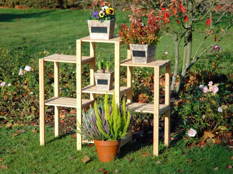 Präsentieren Sie mit der platzschaffenden Blumentreppe Ihre Pflanzen. Sie können bunte Blüten, Kräuter, Blumentöpfe und Vasen mit dieser Treppe optisch nach Ihrem Geschmack anrichten. Die insgesamt sieben Ablagen bieten Ihnen Platz für all Ihre Orchideen, Gerbera, Farne und andere Pflanzen. Verschönern Sie somit Ihren Eingangs- und Außenbereich, Ihren Garten oder auch Ihren Balkon.