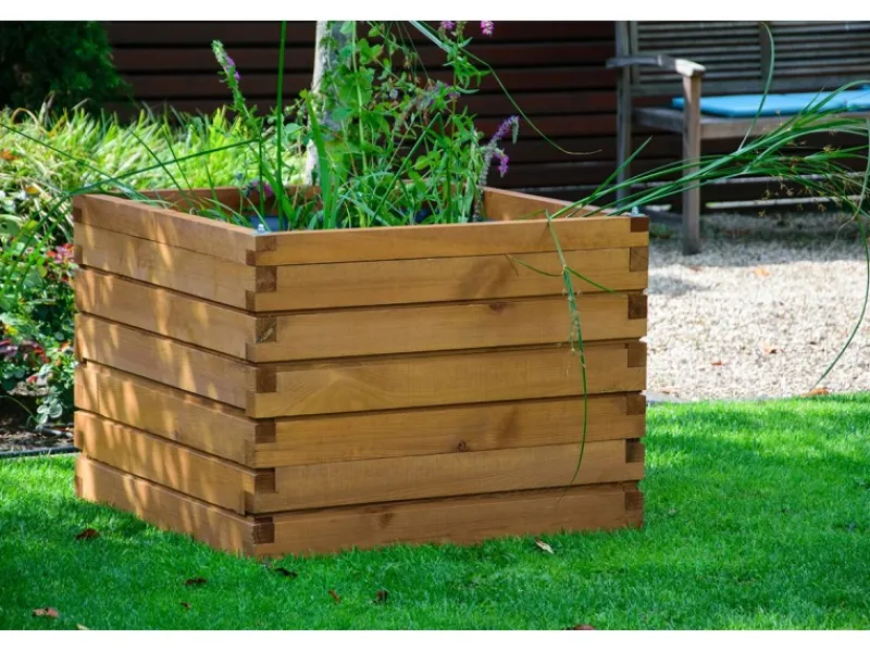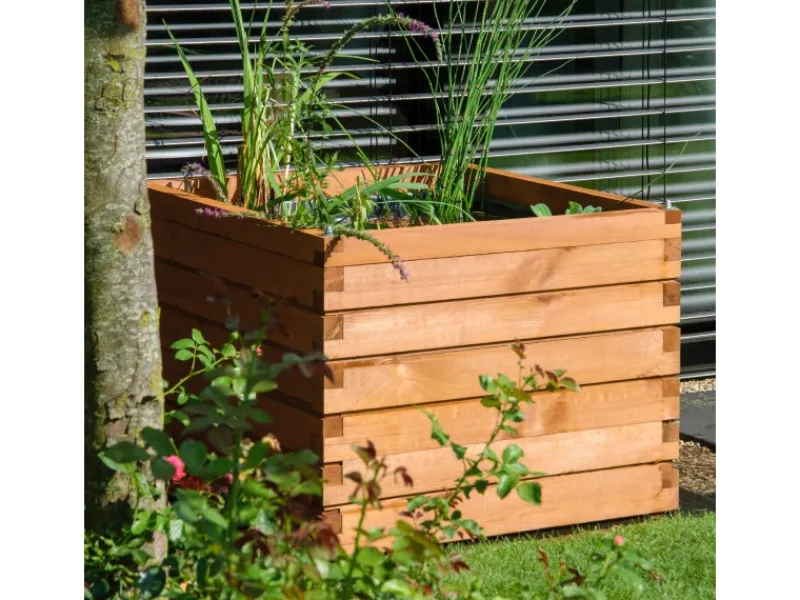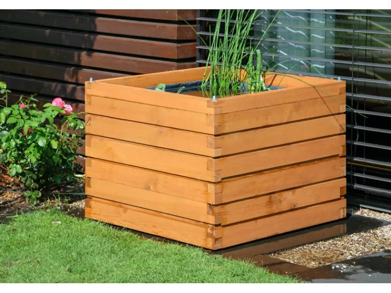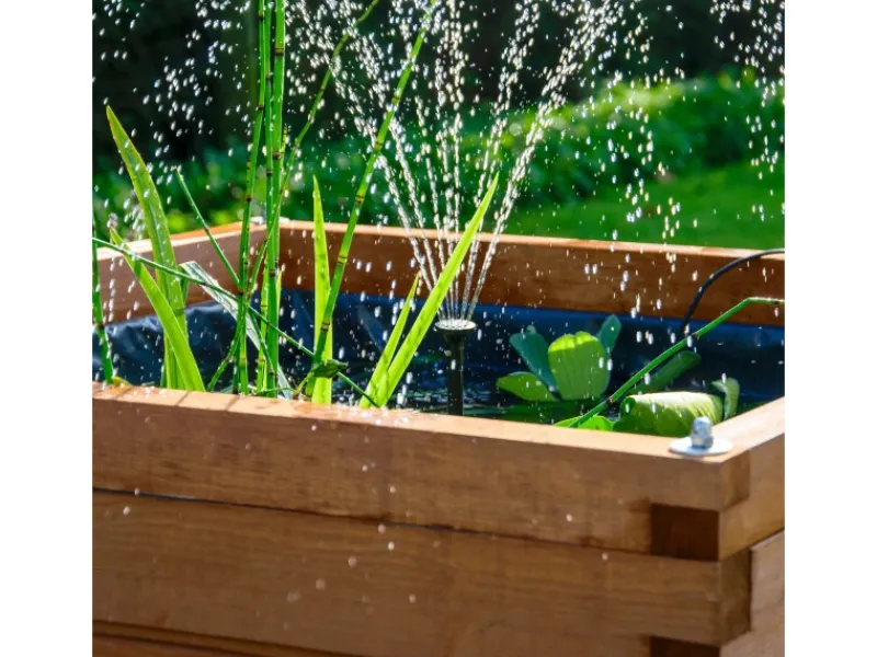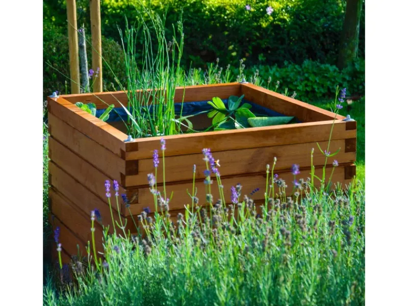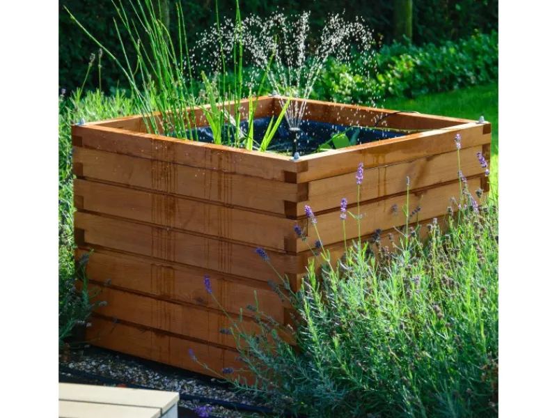 Der Gartenteich besteht aus FSC®-zertifiziertem Kiefernholz und ist wetterfest lasiert