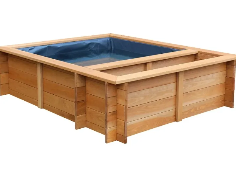 Der Gartenteich besteht aus FSC®-zertifiziertem Kiefernholz und ist wetterfest lasiert
