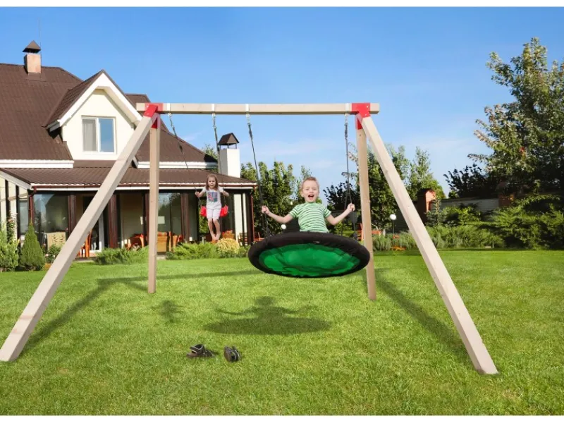 Schaukeln bieten Ihren Kinder im Freien enormen Spielspaß. Zu zweit auf der Doppel-Schaukel macht es besonders viel Spaß. Die Schaukel eignet sich auch für ältere Kinder und Erwachsene. Außerdem können die Schaukelsitze einfach gegen andere Sitze (separat erhältlich) ausgetauscht werden. Somit bietet das Schaukelgestell vielseitiges Vergnügen.