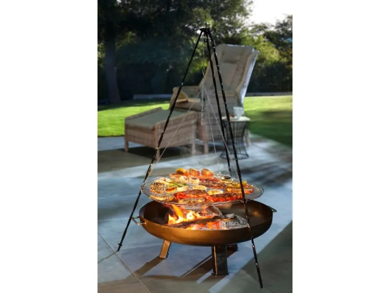 Das stabile Buschbeck Dreibein für eine Rost Feuerschale Ø 70 ermöglicht ein einfaches Schwenken des Grills und somit eine gleichmäßige Hitzeverteilung über den ganzen Grillrost. Die Höhe ist einstellbar von 80 cm bis 100 cm. Das Dreibein ist aus hochwertigem Stahl gefertigt.