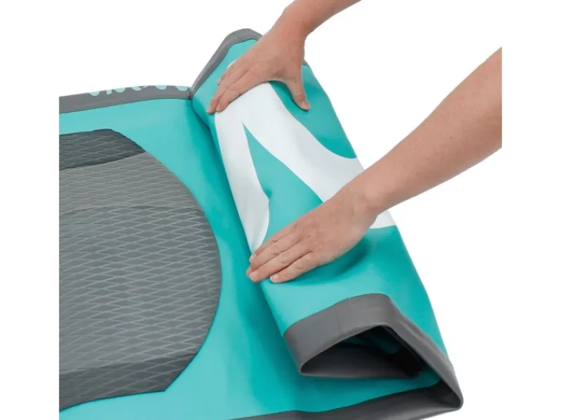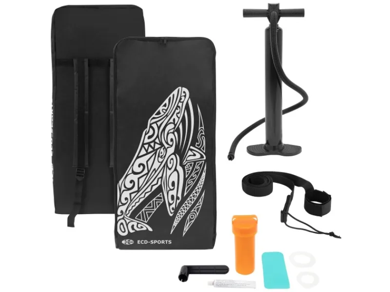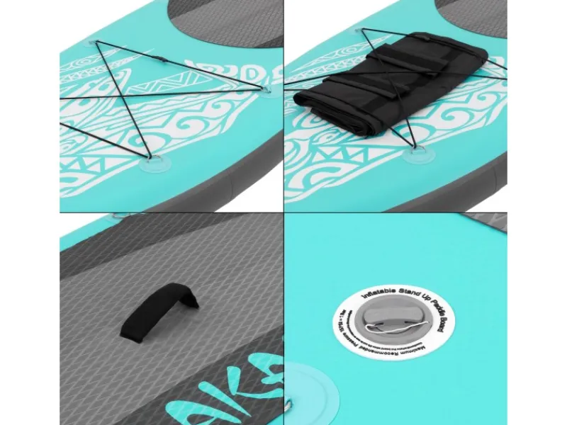 Da es aufblasbar ist, lässt es sich ganz leicht in der mitgelieferten Tragetasche auf Reisen transportieren. In der Tragetasche finden zusätzlich ein Zubehör-Set, Paddel und Pumpe Platz. Die Tasche besteht aus einem wasserabweisenden, robusten und strapazierfähigen Material. Somit können Sie auch Ihre Wertgegenstände und Kleidung vor Nässe und Sand schützen.