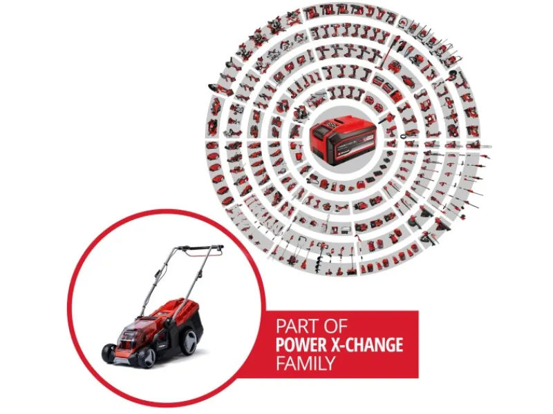 Zwei Akkus und zwei Ladegeräte sind im Lieferumfang enthlaten. Die Akkus verfügen über eine praktische Füllstandsanzeige mit 3 LEDs, sodass Sie vorausschauend arbeite. Die Akkus können Sie mit allen weiteren Geräte der Systemreihe kombinieren. Angetrieben wird der Akku-Rasenmäher von dem Einhell PurePOWER Brushless Motor. Dieser bürstenlose Motor bietet mehr Kraft und eine längere Laufzeit als herkömmliche Kohlebürsten-Motoren. Nach einer Online-Registrierung bei Einhell gelten 10 Jahre Garantie auf den Brushless-Motor.