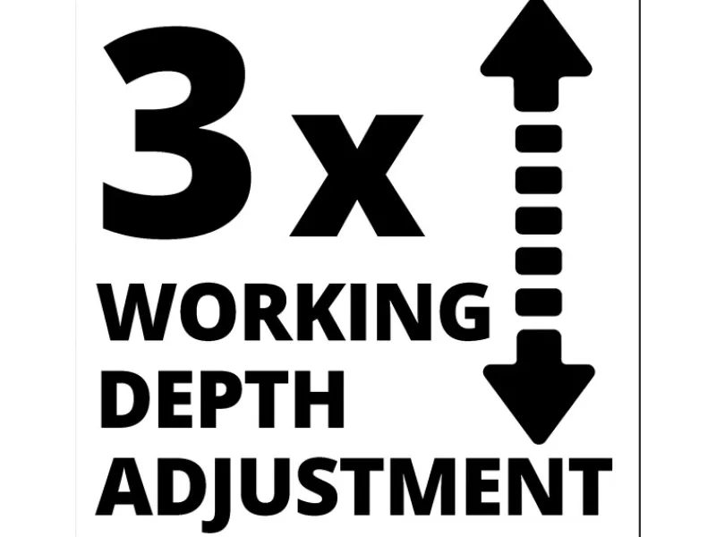 3-stufige Arbeitstiefeneinstellung mit Parkposition