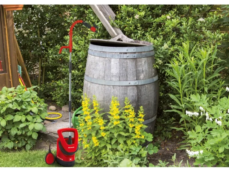 Die Pumpe verfügt über einen flexiblen Schwanenhals mit Absperrhahn zur individuellen Positionierung des Gartenschlauches, sowie eine Regenfasshalterung, welche die Befestigung der Pumpe an der Regentonne ermöglicht. Die GE-SP 3546 RB ermöglicht das Absaugen von Verunreinigungen bis 2,5 mm Korngröße. Ihr langlebiges Pumpengehäuse aus schlagzähem Kunststoff macht sie äußerst robust. Sie ist mit einem Tragegriff für den einfachen Transport ausgestattet. Dank integrierter Kabelaufwicklung und Staufach für Verlängerungsrohre sind Pumpe und Zubehör im Handumdrehen ordentlich und sicher verstaut.