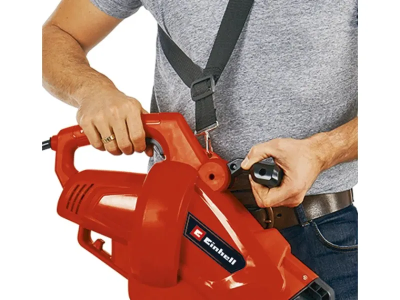Die zwei Führungsrollen helfen Ihnen den Elektro-Laubbläser zu transportieren und ermöglicht ein rückenschonendes und bequemes Arbeiten. Der Tragegurt bietet einen angenehmen Tragekomfort auch bei längeren Arbeiten.
