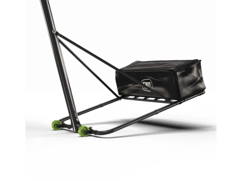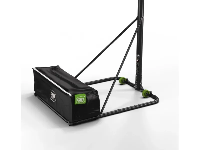 Der Exit NovaStar höhenverstellbarer Basketballkorb zum Mitwachsen ist eine innovative Basketballanlage auf Rollen, die so konstruiert ist, dass sie mit dir oder deinem Kind mitwachsen kann. Der mobile Basketballkorb, einschließlich stabiler Basketballbrett und Basketballnetz, ist höhenverstellbar. Da der Ständer über sage und schreibe zehn verschiedene Höheneinstellungen verfügt, ist der Korb für alle Altersklassen und Niveaus geeignet. Mit dem NovaStar kann man als junger Basketballspieler beginnen und mit derselben Basketballanlage bis zum Seniorniveau weitertrainieren. Durch das einzigartige Design ist das Umstellen vom Junior- zum Seniorstand ganz einfach. Der verstellbare Rahmen besteht aus zwei Rohren für die Juniorausführung und drei Rohren für die Seniorausführung. Für die Seniorausführung montierst du einfach ein zusätzliches Teil, sodass der Basketballkorb höher hängt.Der Exit NovaStar Basketballkorb verfügt über zehn mögliche Höheneinstellungen. Bei der Juniorausführung gibt es fünf verschiedene Höheneinstellungen (125 , 145 , 165 , 185 , 205 cm). Bei der Seniorausführung sind ebenfalls fünf Höheneinstellungen möglich (225 , 245 , 265 , 285 , 305 cm), die höchste Position des Korbs entspricht dabei der offiziellen Wettkampfhöhe. Die Korbhöhe lässt sich jeweils am praktischen Knopf einstellen. Dank der praktischen Rollen lässt sich der Basketballkorb mühelos verschieben. An der Rückseite befindet sich ein Gegengewicht mit drei Sandsäcken, die du selbst füllen kannst. Dieses Gegengewicht sorgt dafür, dass der NovaStar Basketballkorb sicher und fest an seinem Platz stehen bleibt.Der NovaStar höhenverstellbarer Basketballkorb zum Mitwachsen wurde nach dem Exit Konzept entwickelt. Daher ist der Basketballkorb zu 100 % reparierbar. Das heißt, dass es für jedes Einzelteil auch Ersatzteile gibt. Außerdem ist der Basketballkorb zu 100 % recycelbar. Das liegt daran, dass wir nur Monomaterialien verwenden. Dabei handelt es sich jeweils um sortenreines Material, das aus nur einem Rohstoff besteht. Diese Materialien sind leichter zu recyceln, da keine Rohstofftrennung erforderlich ist. Der schwarze Metallrahmen ist verzinkt und pulverbeschichtet. So hat Rost keine Chance und der NovaStar hält allen Wetterbedingungen stand.