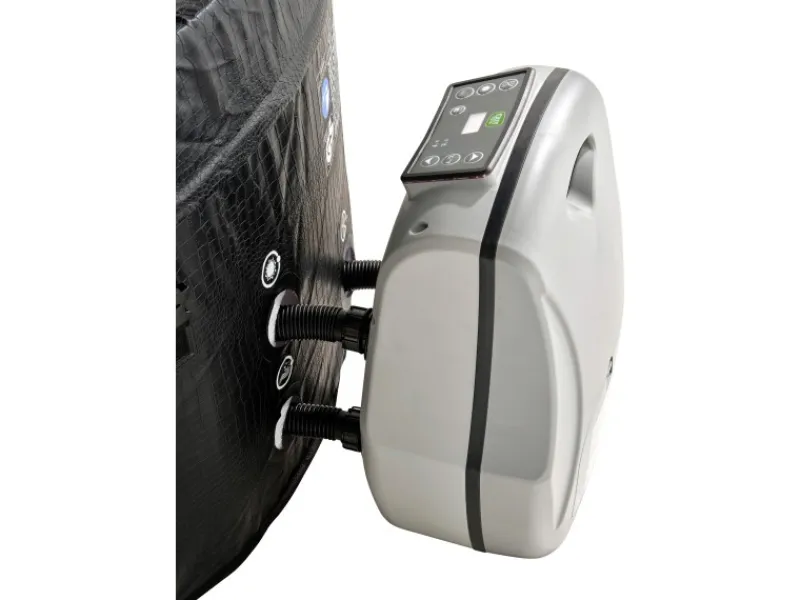Mit dem aufblasbaren Whirlpool-Deckel und der isolierenden Abdeckplane inklusive Sicherheitsschloss schließen Sie den Whirlpool luftdicht ab und das Wasser bleibt warm. Der EXIT Leather Premium Whirlpool ist dank seiner Multifunktionspumpe, die das Wasser reinigt und gleichzeitig auf bis zu 40 Grad Celsius erhitzt, praktisch wartungsfrei. Mit dem digitalen Bedienfeld können Sie ganz einfach die Temperatur einstellen und die 120 Luftdüsen aktivieren, um für ordentlich Bläschen zu sorgen.