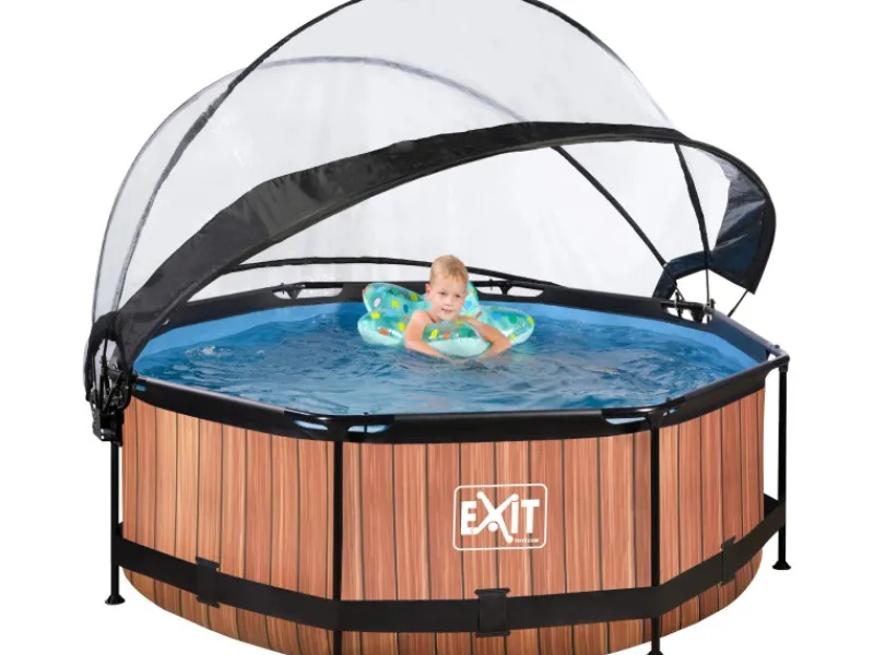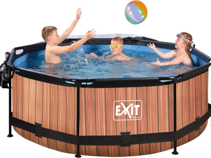Das tolle Holzmuster und der schwarze Rahmen geben dem Wood Pool eine einzigartige Ausstrahlung und dank des natürlichen Aussehens integriert sich der Pool völlig in Ihrem Garten. Die Innenseite des Pools ist blau, sodass Sie das frische Schwimmbad-Gefühl haben.
