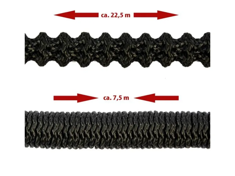 Der flexible Wasserschlauch dehnt sich unter Wasserdruck um das Dreifache von ca. 7,5 m bis ca. 22,5m aus und zieht sich beim Entleeren wieder in die ursrprüngliche Größe zusammen.