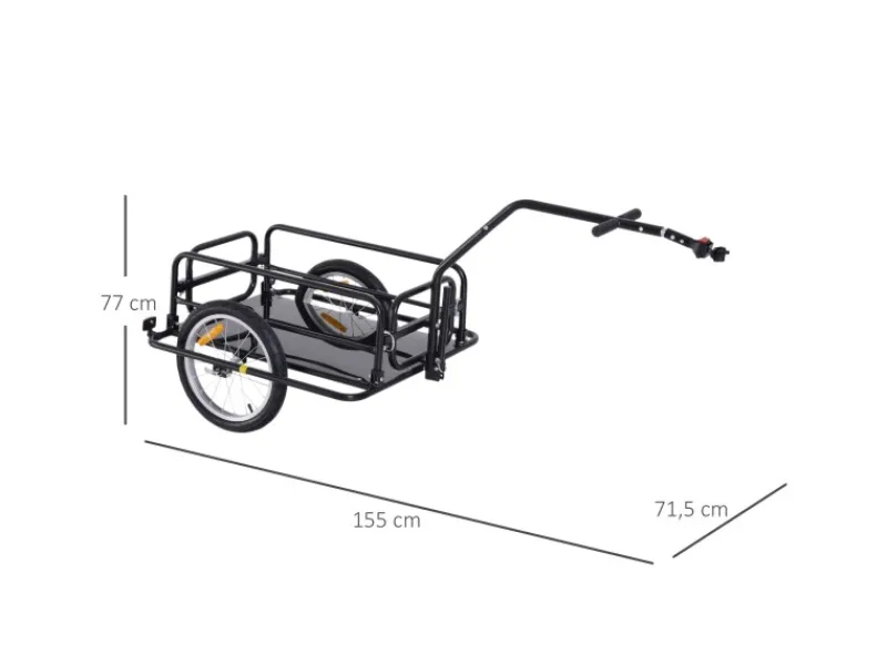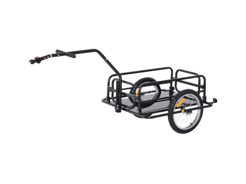 Mit dem Fahrrad lässt sich sehr wohl viel transportieren. Mit dem Lastenanhänger von HOMCOM sogar sehr einfach. Die Universal-Anhängerkupplung passt an fast jedes Fahrrad und ist schnell an- und wieder abmontiert. Der robuste Stahlrahmen lässt eine Beladung von bis zu 36 kg zu. Mit den 16-Zoll-Reifen ist sich der Anhänger auch vollbeladen noch leicht zu ziehen und die Felgenreflektoren sorgen für eine bessere Sichtbarkeit.