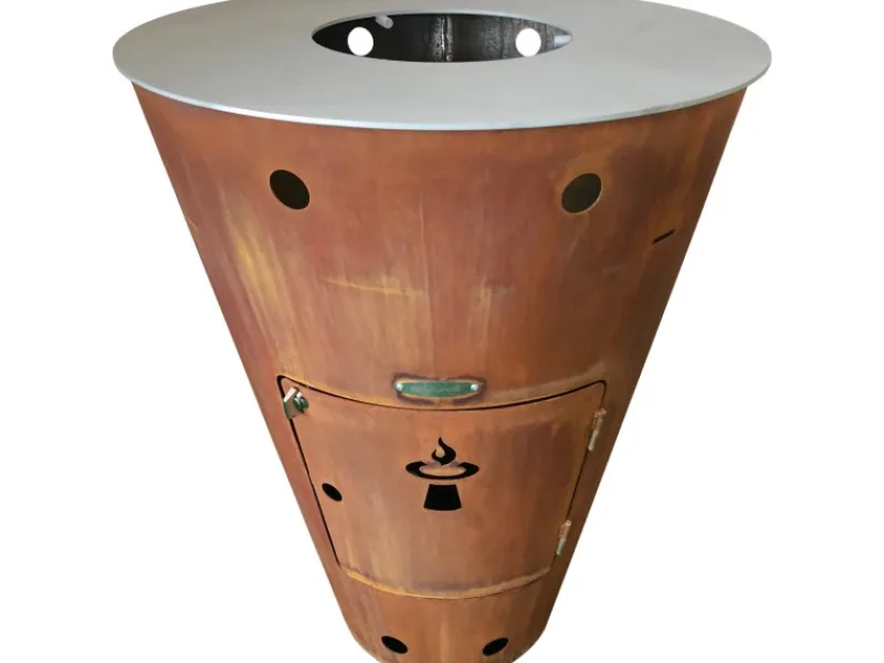 Die Kombination aus Grillplatte und Feuerstelle vereint ein klassisches Design mit robusten Materialien und sieht auch während der Nichtbenutzung schick aus. Zusätzlich beansprucht die Grillplatte durch die konische Form nur wenig Stellfläche.