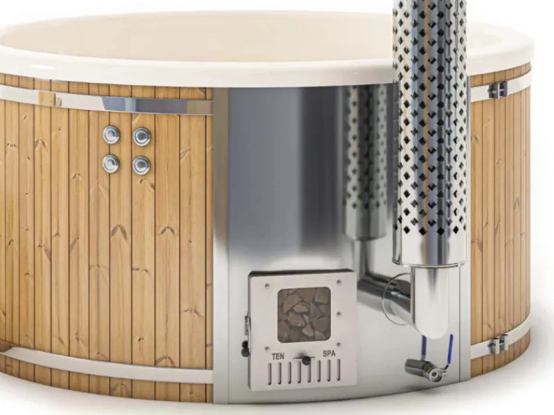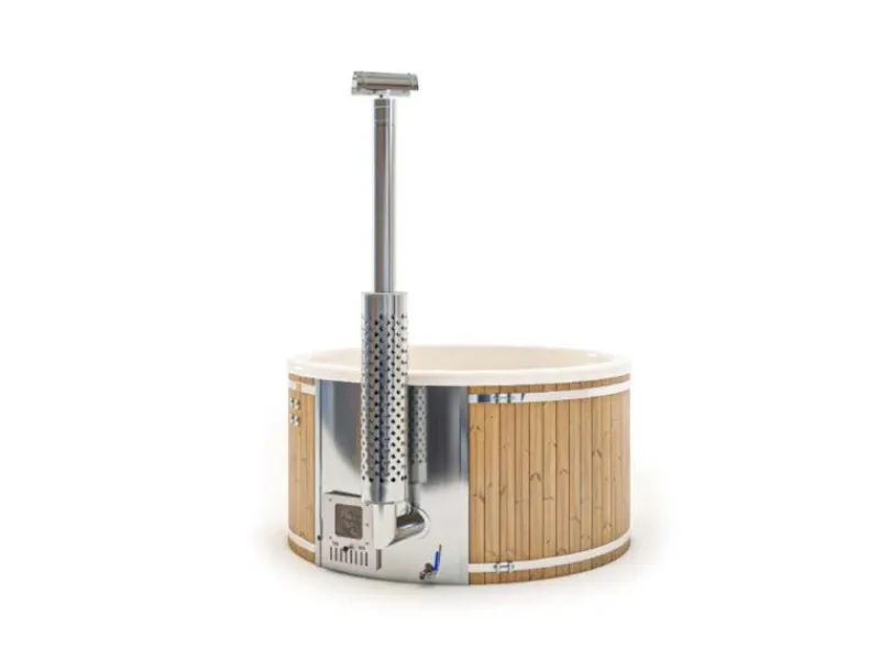 Das Badefass besteht aus einer Außenverkleidung aus Thermoholz und einem Inneneinsatz aus GFK. Die schnelle Inbetriebnahme wird durch eine vormontierte Lieferung ermöglicht, sodass Sie schon bald in Ihrem neuen Badefass entspannen können.