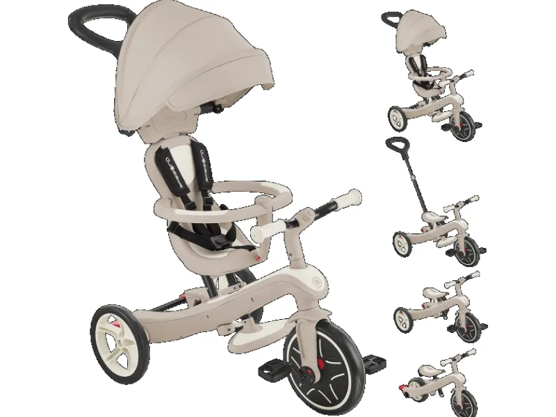 Verwandelbar in Kinderwagen, Dreirad mit und ohne Anschub und Laufrad, einfacher werkzeugloser Umbau