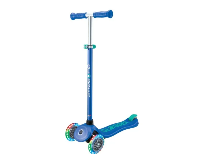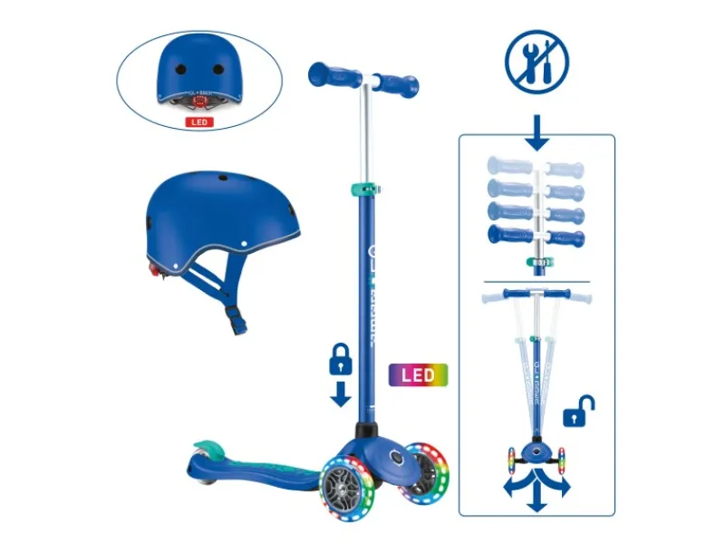Hochwertiger Kinderscooter mit 3 Rollen inkl. farblich passendem Kinderhelm mit LED-Rücklicht